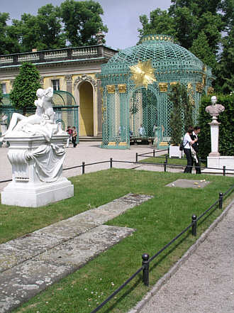 Östlicher Pavillion, im Vordergrund die Anlage mit dem Grab Friedrichs des Großen und den Gräbern seiner Lieblingshunde.