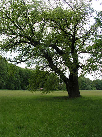 Im nördlichen Teil greift der Park weit in die Landschaft aus. Hier bilden vor allem Baumsolitäre einen Blickfang.
