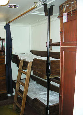 Schlafraum im Oceanliner mit Einzelbetten und Schrank