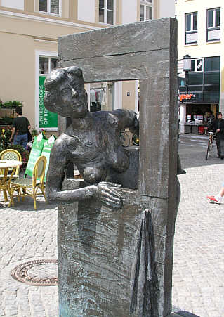 Der Hauptmarkt setzt sich hinter dem Rathaus im kleineren Fischmarkt fort. Ihn ziert heute ein Brunnen.