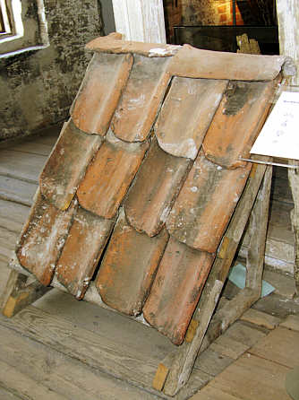 Das Dach wurde mit überlappenden Pfannen gedeckt, die Ritzen wurden innen mit mörtel verstrichen, um den Wind abzuhalten.