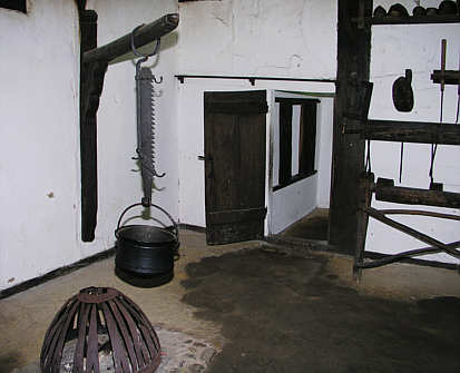 Rechte Flettwand mit dem Eingang zu den Alkoven. Da auch dieses Haus von zwei Familien bewohnt wurde, hatte es zwei Alkovenkammern, die durch eine dünne Wand voneinander abgeteilt waren.