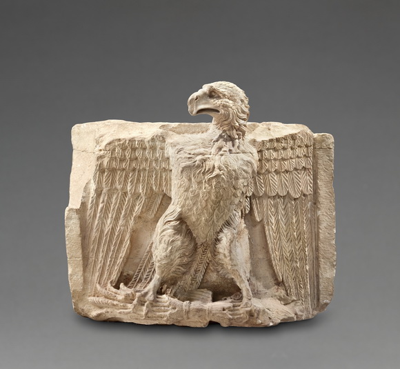 Baurelief mit Adler auf Blitzbündel, aus Petra, Kalkstein,