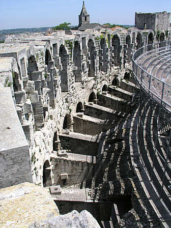 der oberen Sitzränge abgetragen wurde, um eine Plattform