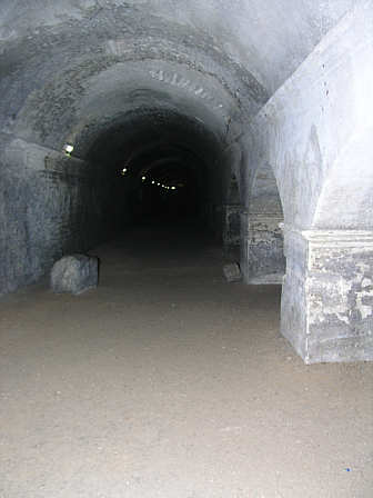 Kryptoportiken, die ehemals nicht öffentlich zugänglichen Substruktionen der Forums-Portiken. Blick im Nordflügel von West nach Ost.