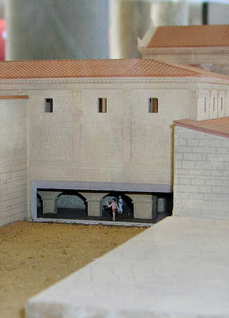 Modell des Forums mit Blick in die Kryptoportiken des 1. Jh. v. Chr., die zumindest imm bereich des späteren nördlichen Portikus nach außen offen waren.