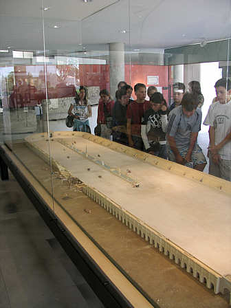 Modell des Zirkus. Hinten die Rundung, in der Mitte die Spina, deren Obelisk jetzt auf der Place de la Republique steht.