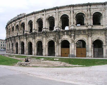 Im 1. Jh. v. Chr. errichtetes Bauwerk für 21000 Zuschauer, 133 x 101 m groß. Das Amphitheater von Nîmes ist das besterhaltene der römischen Welt.