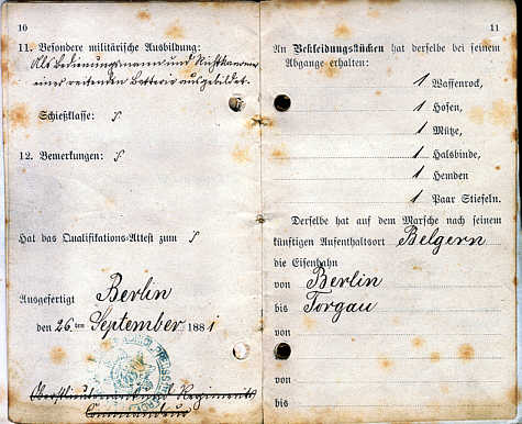 Militärpass des Gefreiten Karl Gustav Schönfeld